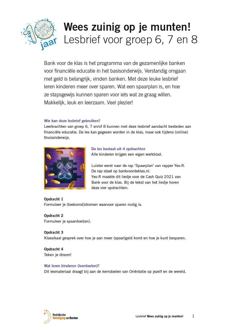 Biedt een doorlopende leerlijn voor groep 3 t/m 8, met praktische lessen en digibord materialen over sparen, uitgeven en keuzes maken. Geschikt voor basisscholen (groep 3 t/m 8).